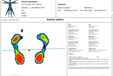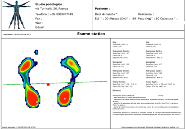 In supporto alla valutazione funzionale eseguiamo anche una valutazione dell'appoggio plantare in statica e dinamica con pedana baropodometrica.